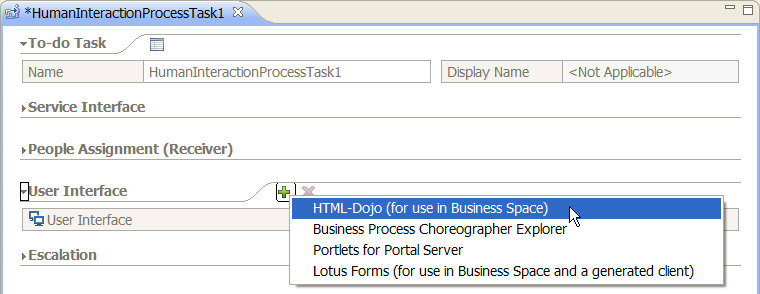 symbol next to User Interface and select HTML-Dojo (for use in Business Space).