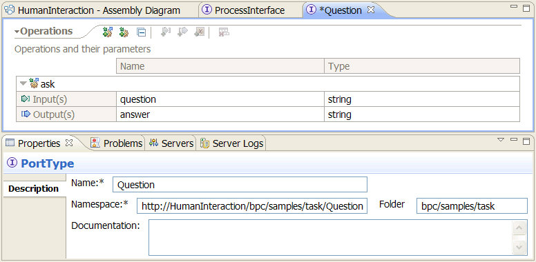 bpc/samples/task.ProcessInterface.bpc/samples/task and Name=Question.Now, add operations to your interfaces. To add operations to an interface, complete the following steps:
