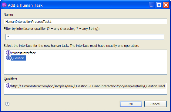 HumanInteraction.This sample requires two interfaces: one for the process and one for the human task. To create each interface, complete the following steps: