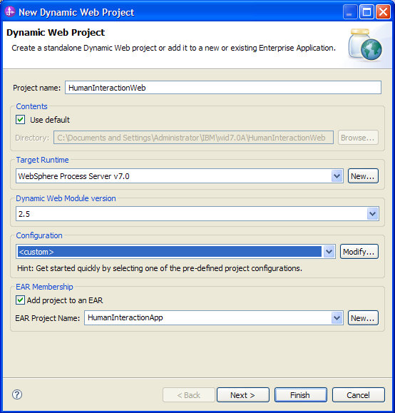 HumanInteractionWebproject as Project name button.