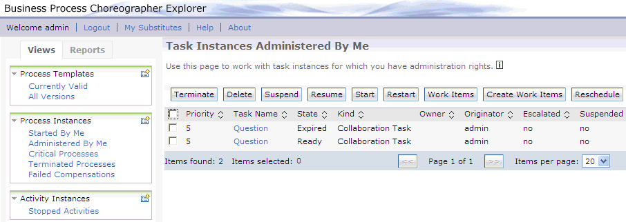 Note: The relative expiration interval specified in the Ad-hoc Web application is converted into an absolute time value, which is displayed in the Expires column. Once the indicated expiration time is reached, the next refresh operation will make expired task instances disappear from the My To-dos list again.