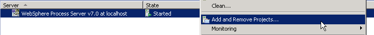 In the table, right-click WebSphere Process Server V7.0.