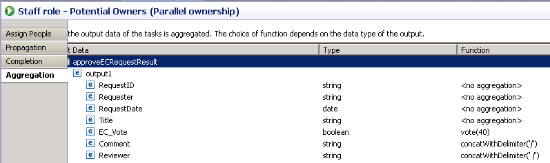 The parallel approval is specified in detail by its propagation details, completion criteria, and aggregation functions.