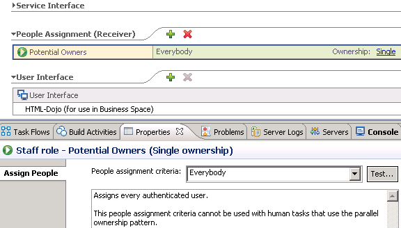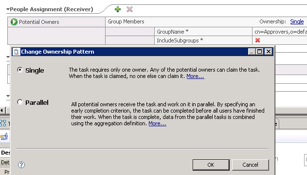 Click People Assignment (Receiver)> Potential Owners > Ownership: Single. This opens the