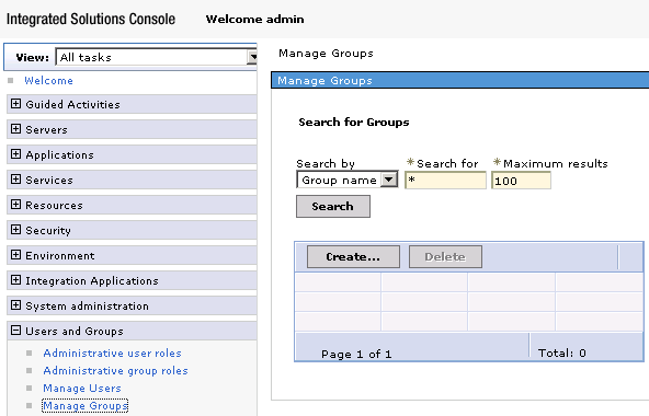 Select the sub menu Users and Groups > Manage Groups, the Manage Groups
