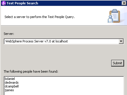 Perform the people test search to verify that the access to the user registry and group resolution work properly.