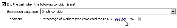 Set the field to End the task when the following condition is met and keep the setting of Simple condition.