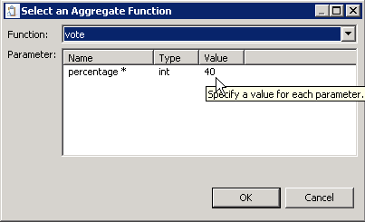 Select the business object field EC_Vote of type boolean and open the Aggregation Function Editor.