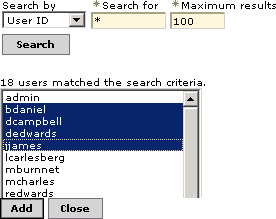 Click Search to perform a wildcard search to select users.