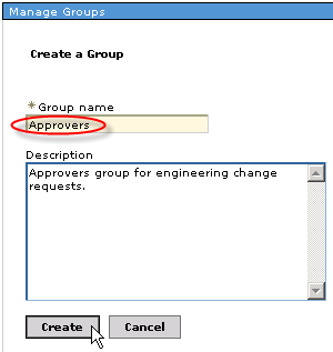 Specify the Group nameApprovers and any description