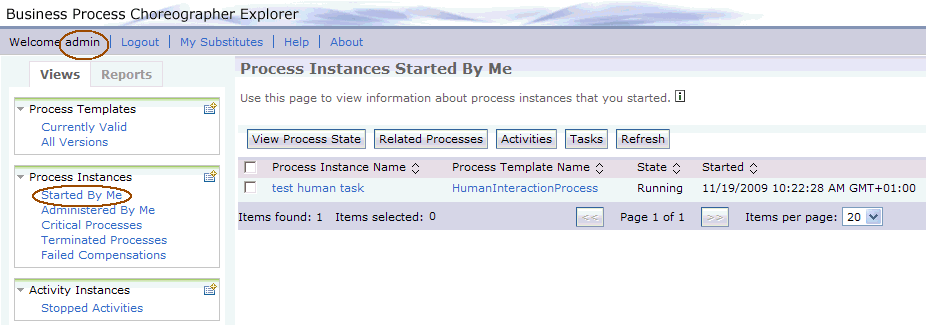 In the previous steps, just an empty table was displayed. This was because in this sample, there are no business processes and no human tasks included that could be instantiated. Therefore in the following, business process instance data and human task instance data are created using a different sample. Then we use the current client again to display those instance data.