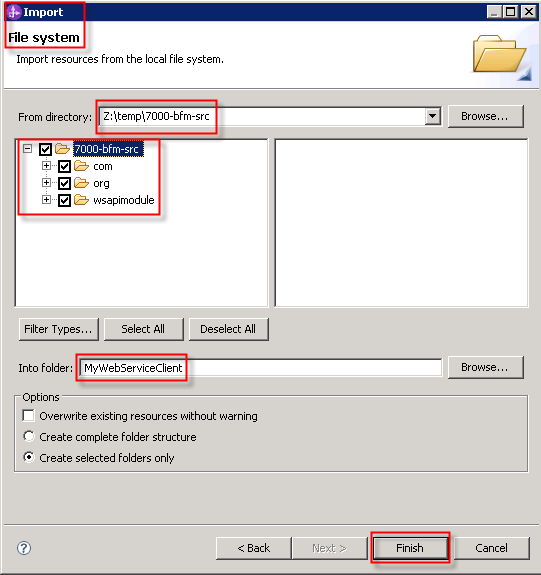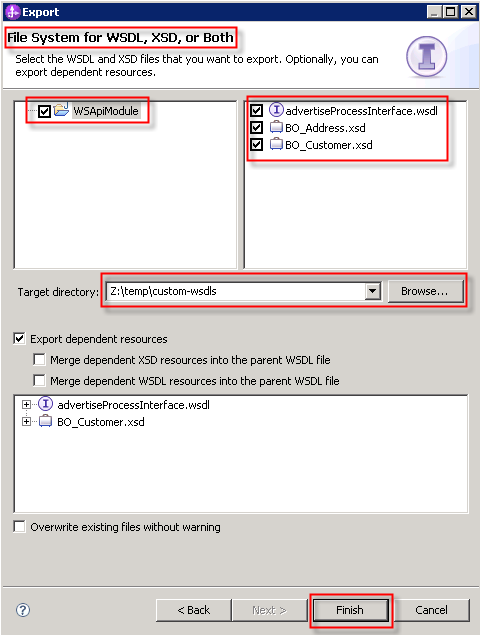 As target directory browse to your temporary directory, subfolder customer-wsdls. Press Finish.
