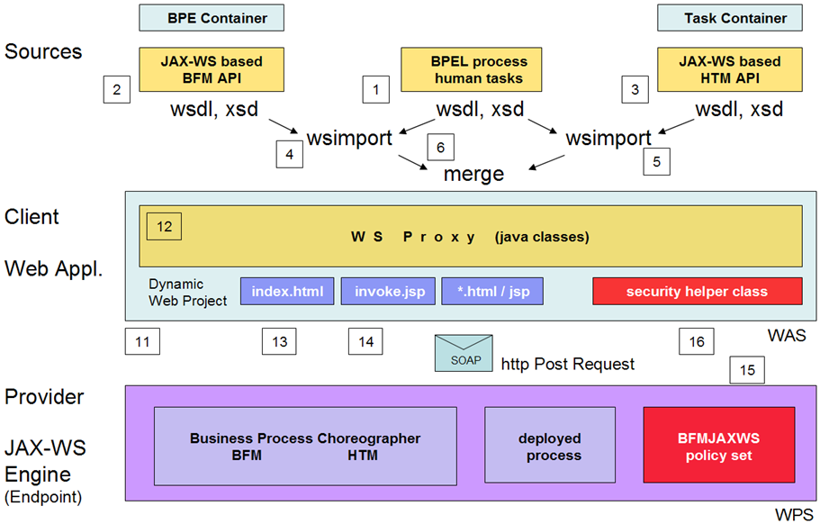 WSDL and XSD files in (3). Based on this you generate the BFM proxy